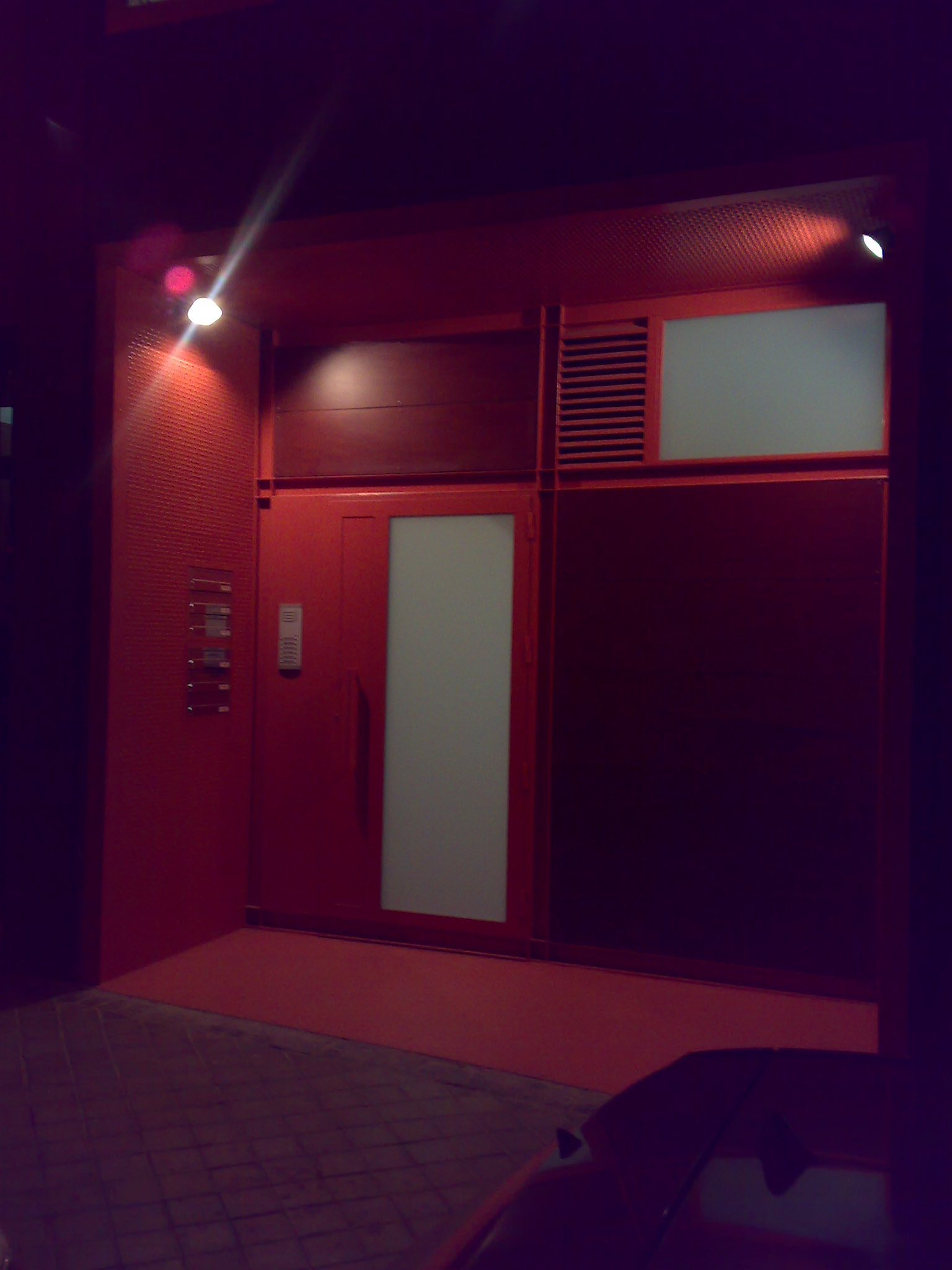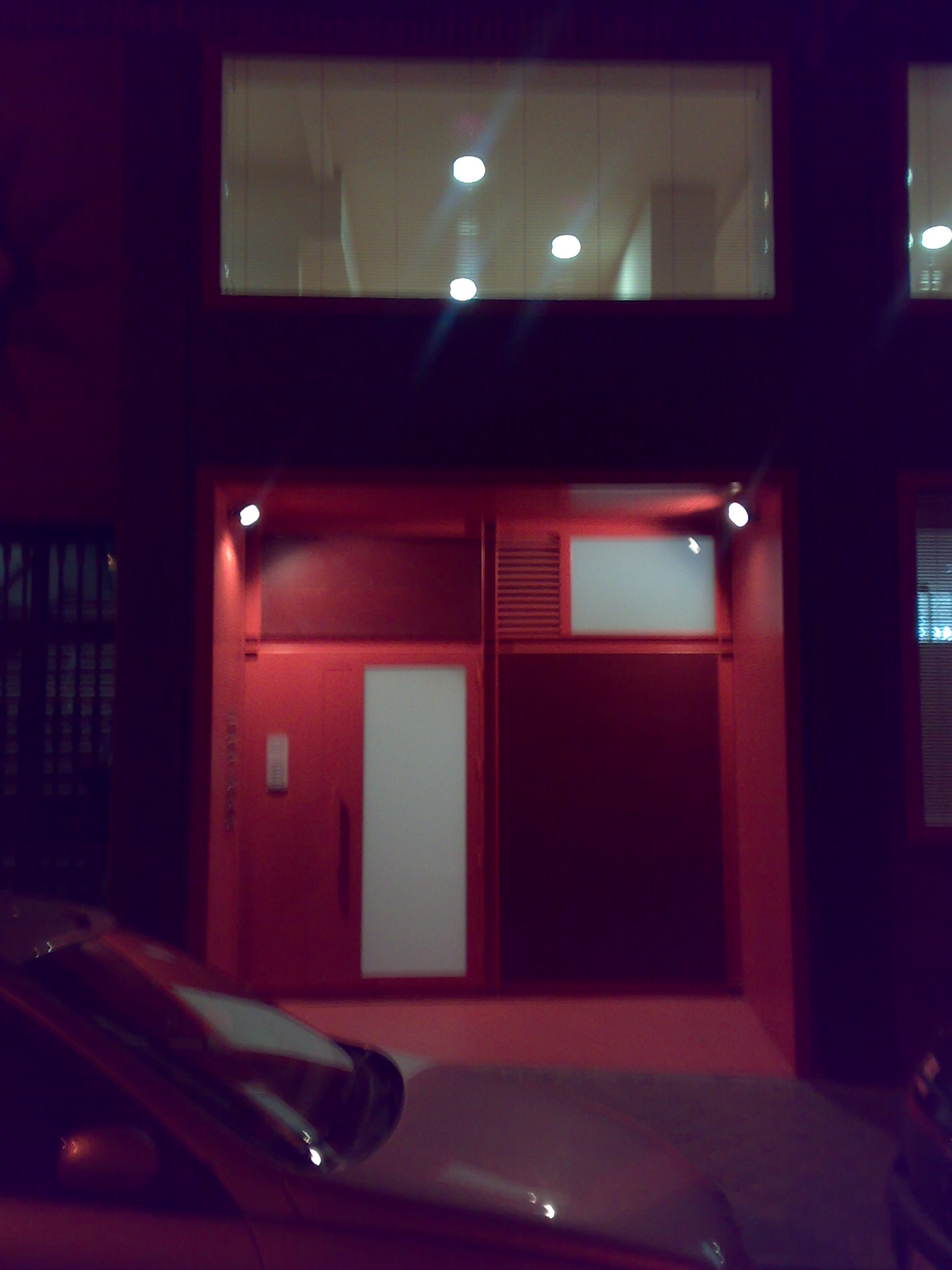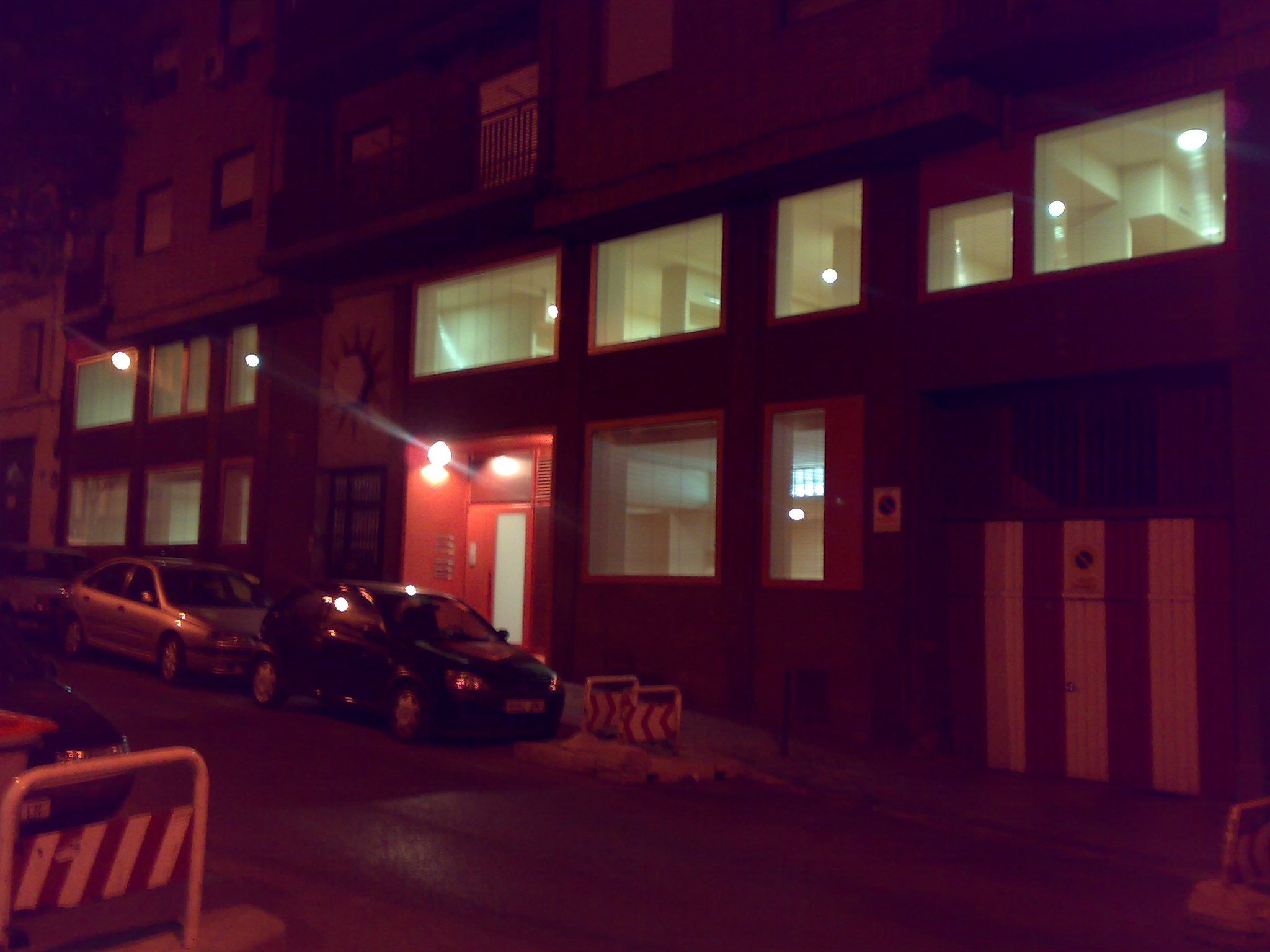 | Vista nocturna de acceso. |
